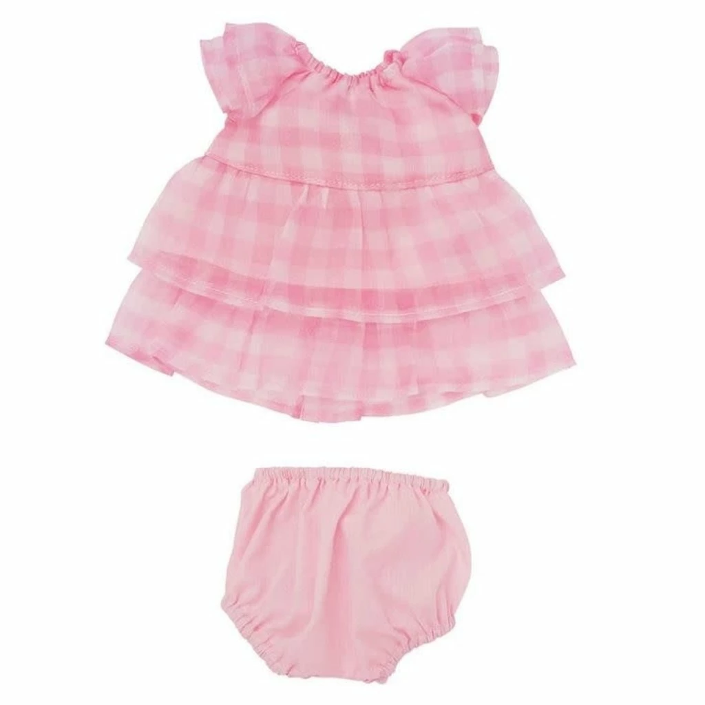 Pretty in Pink – Positively pink and ready for play. This two-piece outfit features a gingham organza tiered dress with flutter sleeves, gathered neck and lined with pink cotton. The dress has a closure on back for easy dressing and undressing. Plus, comes with matching pink cotton bloomers with an elastic waist band.Β