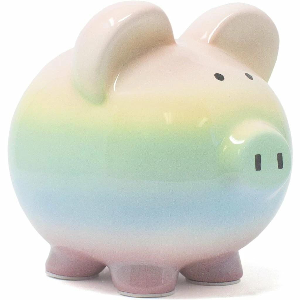 - Boss Hog Piggy Bank is painted in pastel Rainbow Ombre colors and measures 13 inches long.