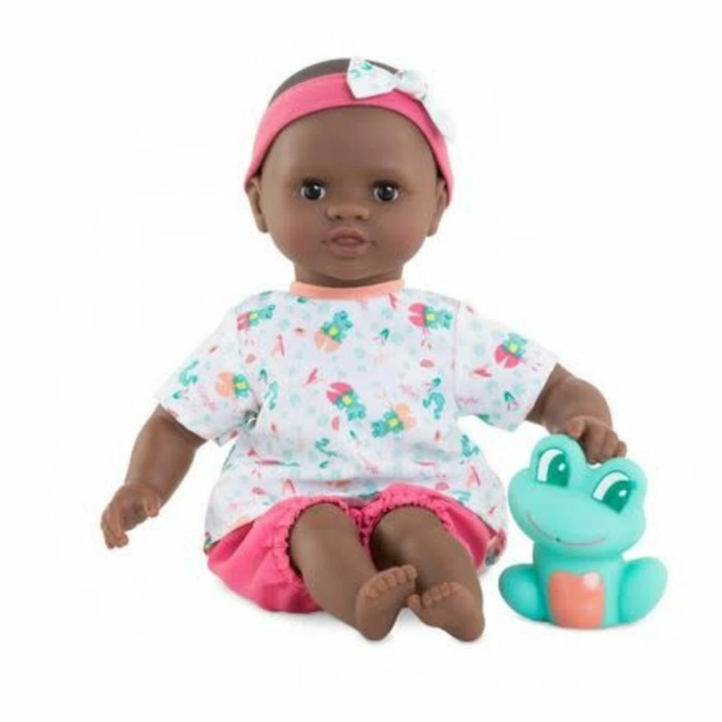 Dressed in a charming pink and white floral print outfit and matching headband and complete with her own bath toy, Bรฉbรฉ Bath Girl Alyzรฉe is part of the mon premier poupon Corolle collection of dolls, clothing and accessories for early nurturing time.