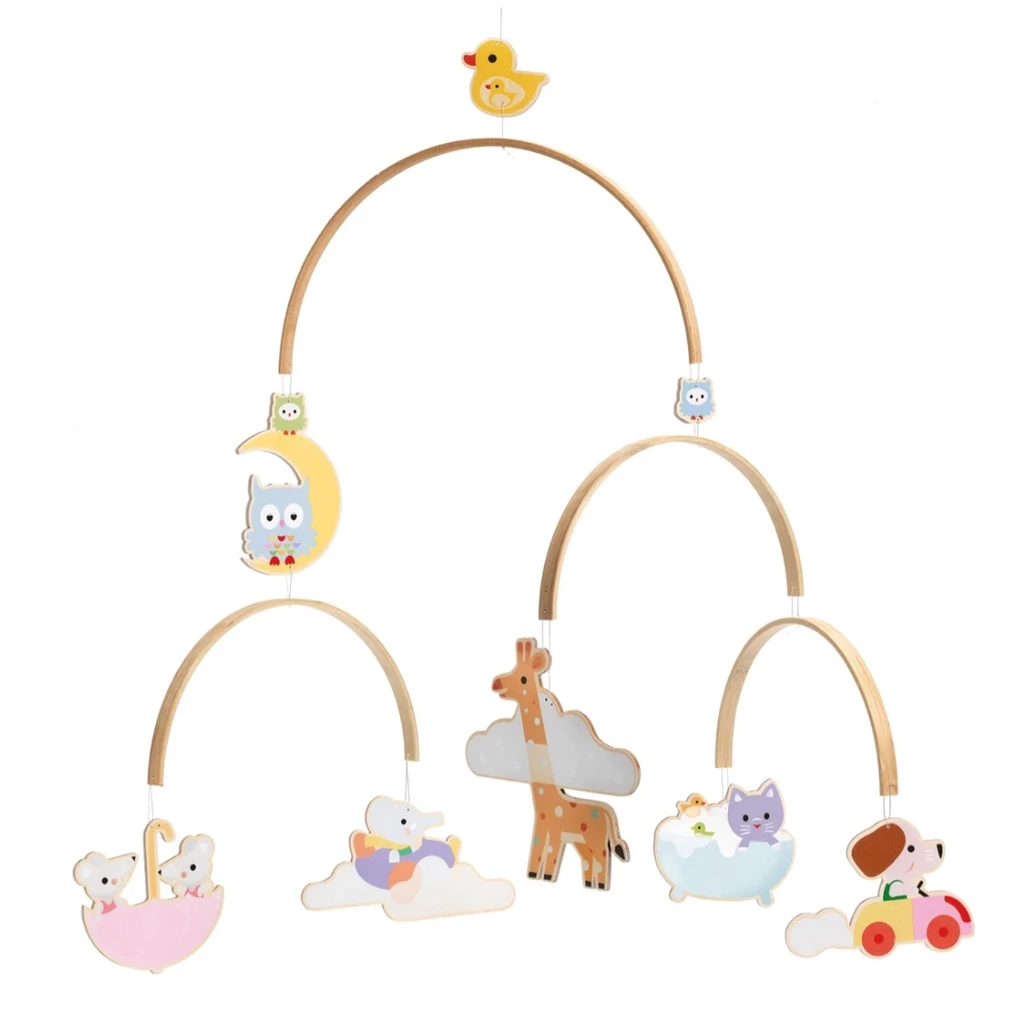 Djeco’sย wooden mobile collection adds refined, fun and colorful hanging art to your child’s living space. These sculptures decorate a space often neglected, and regularly explored by your young one. Wooden mobiles are pre-assembled and ready to hang straight-from-the-box.