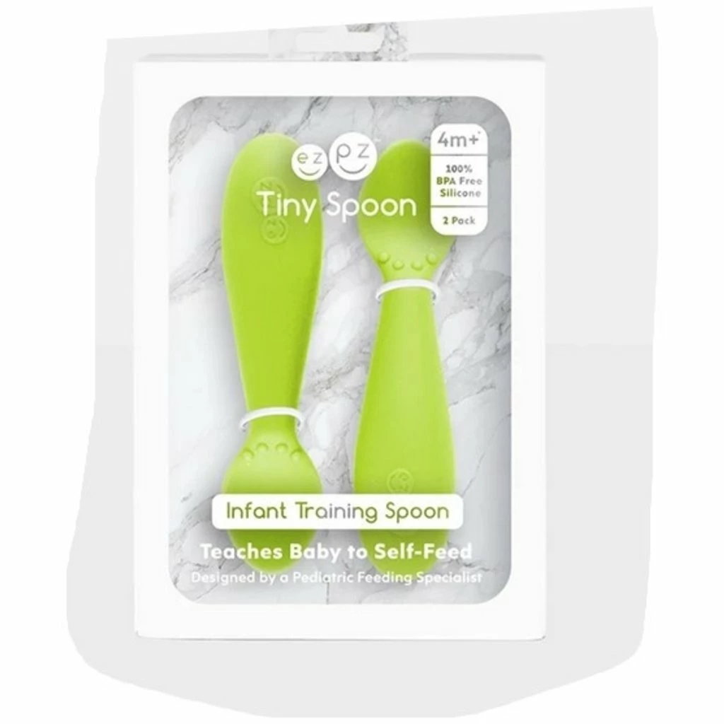 The EZPZ Tiny Spoon is designed to fit babyβs mouth and hands. Learning to self-feed is an important developmental milestone, and the EZPZ Tiny Spoon is designed to help baby learn how to feed independently. The Tiny Spoon has unique features that make it the most functional, developmentally appropriate infant spoon on the market. TheΒ Tiny Spoon’s soft silicone protects baby’s developing teeth and makes gumming + self-feeding safe. Sensory bumps on the spoon bowl activate sensory awareness to decrease gagging and choking. The Tiny Spoon works for both purees and the baby-led weaning feeding methods. Made from high quality silicone that is BPA, BPS, PVC, lead, latex and phthalate free.