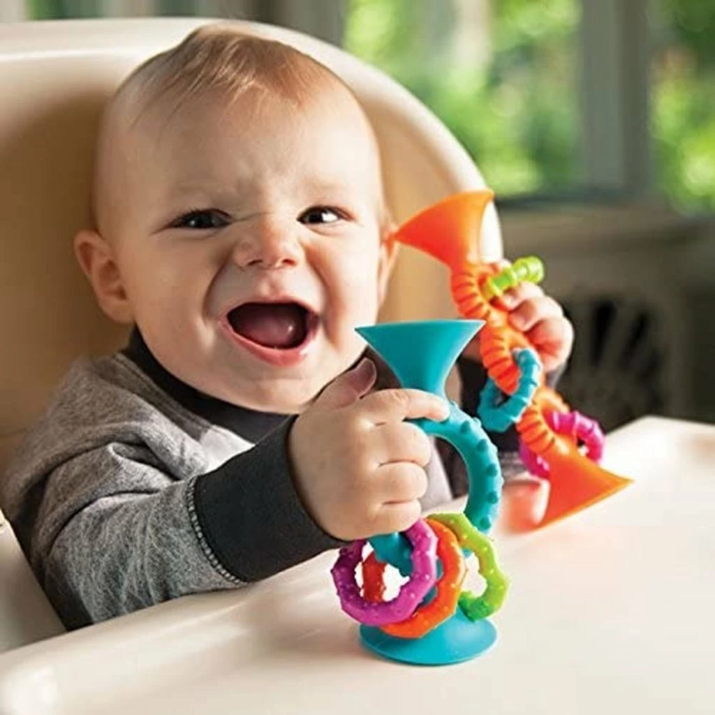 - Large, vibrant silicone suction-cup toys for baby