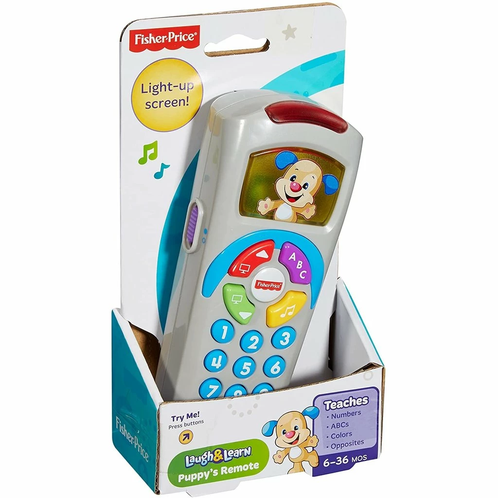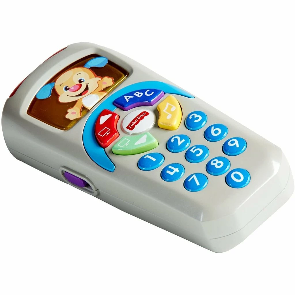 Loaded with buttons, songs & learning fun, this interactive Laugh & Learn® Remote Control will really “click” with baby. For starters, it looks like a TV remote to make the pretend play more real. And when little ones press the buttons, the screen lights up and they’re rewarded with songs & phrases that teach numbers, ABCs, opposites, colors and more.