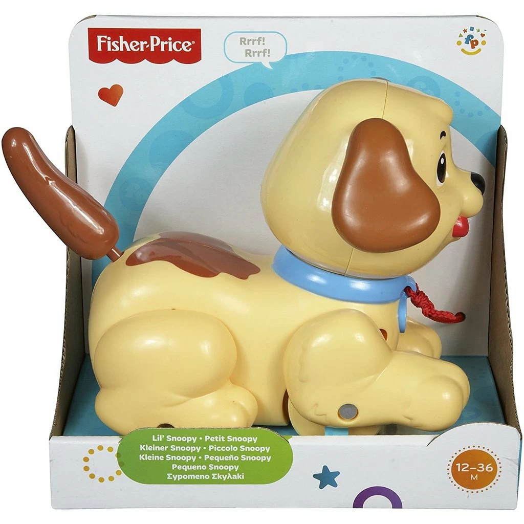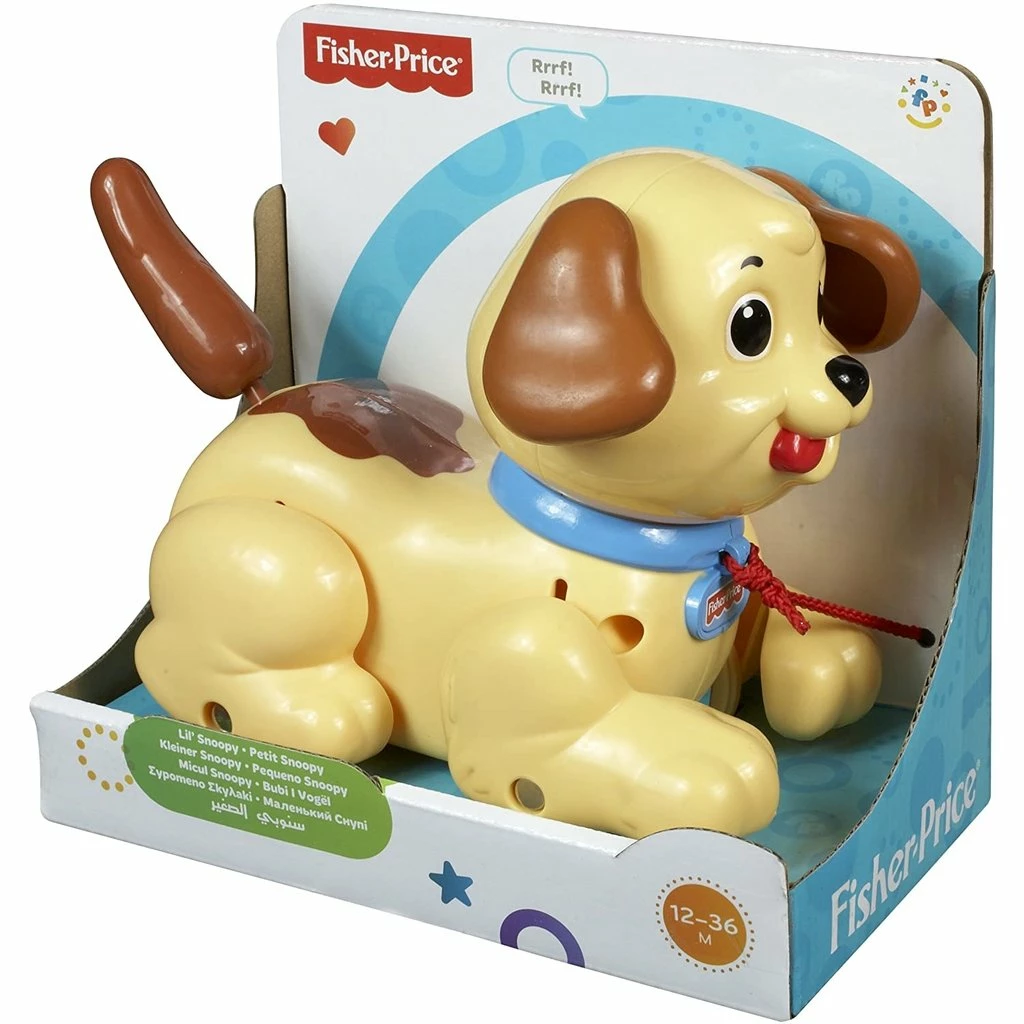 Pull puppy along for sounds & motions. Lil’ Snoopys ears wiggle, tail shakes & listen for his sweet puppy barks! No batteries required! This plastic pup encourages early role play. Pretending to take Lilβ Snoopy for a walk-grasping the leash and pulling him along-will help develop fine and gross motor skills. Fun rewards like sounds and ear wiggles encourage little ones to do it all over again.