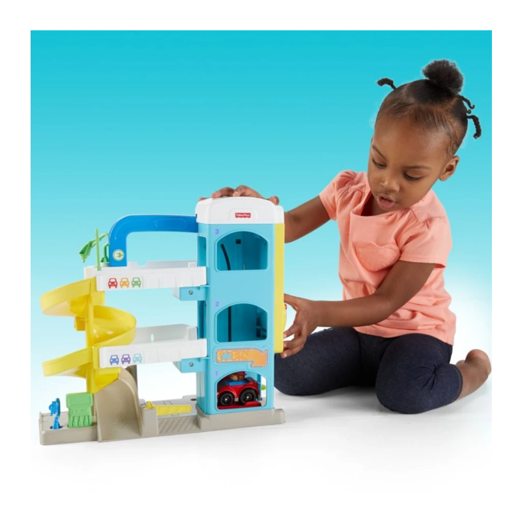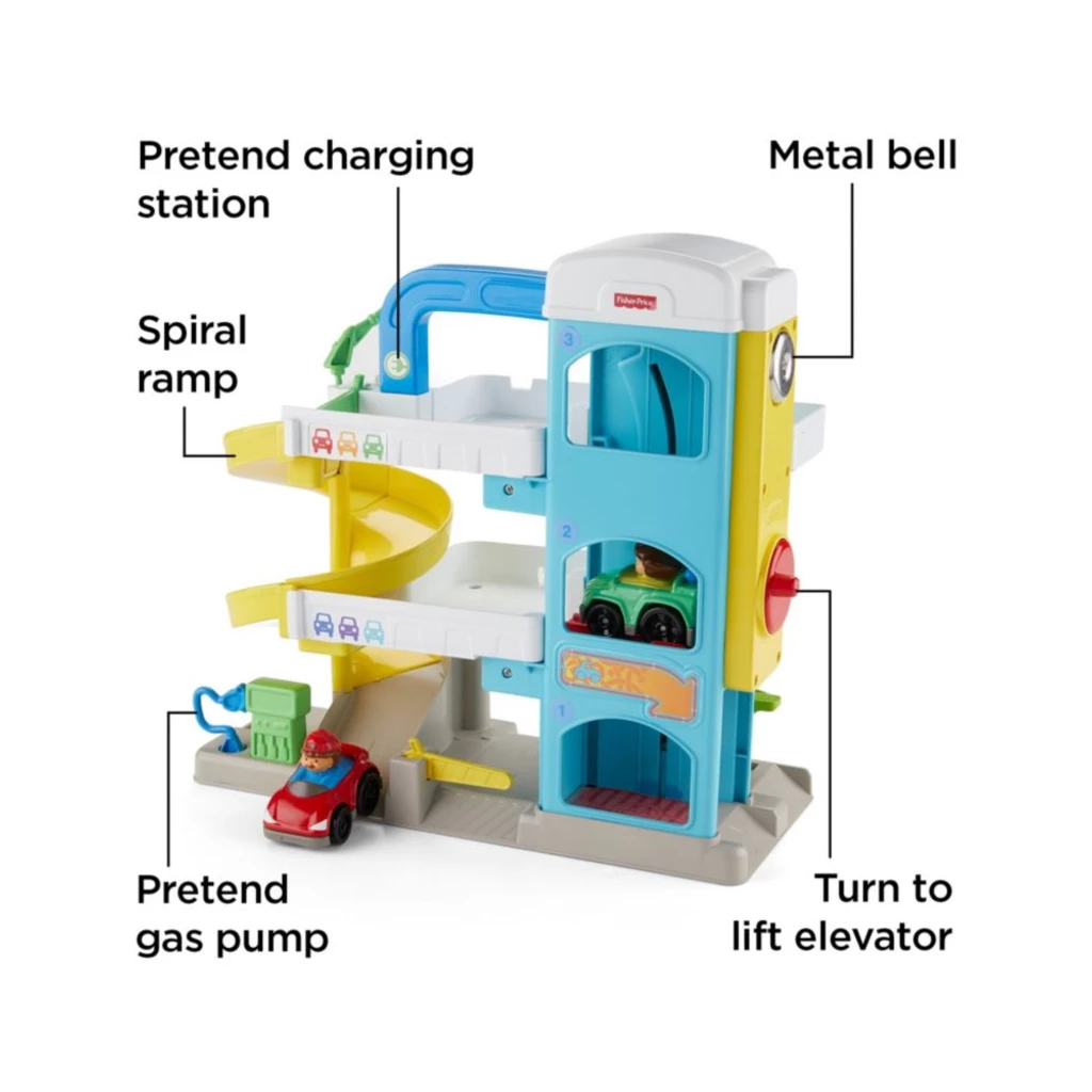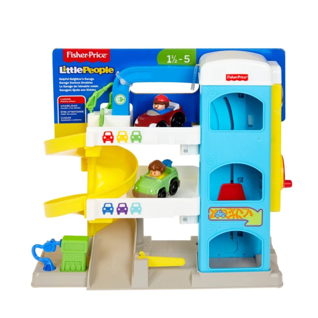 From fueling up, tuning up, and zooming all around, there are miles of fun for toddlers to discover at the Little People® Helpful Neighbor’s Garage! Turn the crank to ride the elevator up the garage levels. Ding, ding! Help a neighbor fix their car! Lift the mechanic’s platform to take a look under the hood, while the second car ‘charges’ at the ‘electronic charging’ station. When they’re ready to roll, kids can send each Wheelies™ vehicle zooming down the spiral ramp to head out on their next adventure. Don’t forget to fill up at the gas pump!