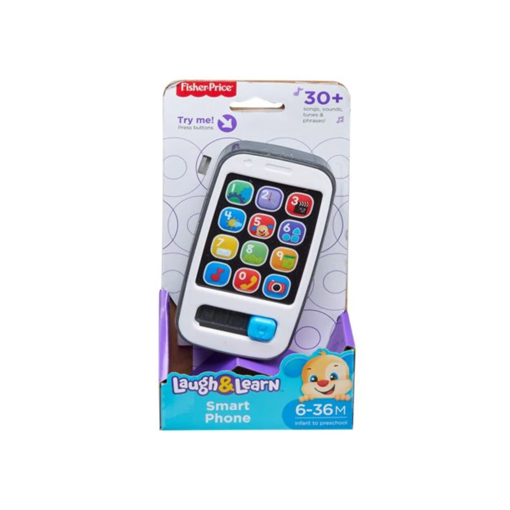 Baby can dial up learning fun with the Fisher-Priceยฎ Laugh & Learnยฎ Smart Phone. Press any of the app tile buttons to hear more than 20 songs and phrases about numbers, counting, greetings and more. Light dances along to the music. Baby can also move the slider back and forth to activate additional songs and sounds. Great for take-along play!