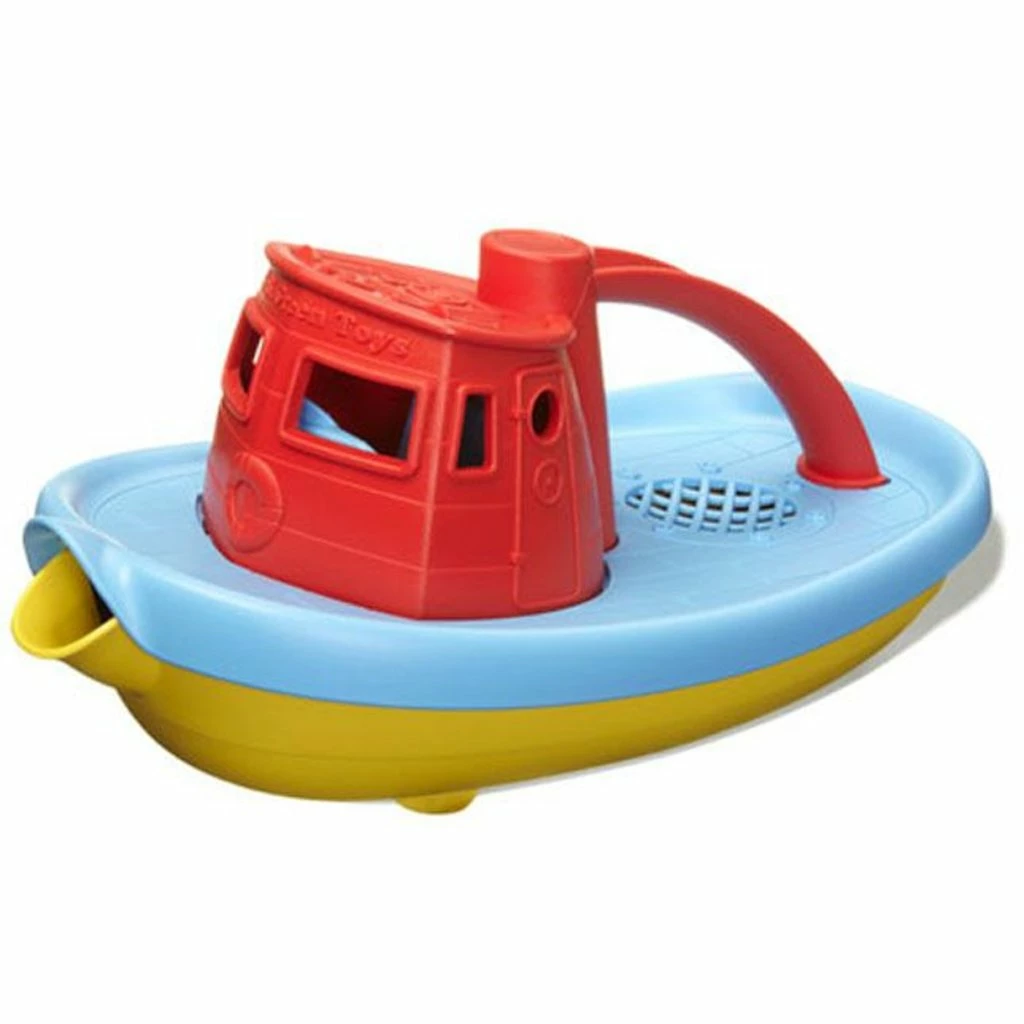 Perfectly buoyant and brimming with brilliant colors and inspiring details, this stout little Tugboat is set and ready to haul big imaginations into an ocean of excitement. Embark on a cruise across the bathtub. Navigate the wading pool. Even splash around in the occasional mud puddle. There’s no end to the Good Green Fun young sailors can have with the Green Toysโข Tugboat. This colorful craft floats great, and has a wide spout to scoop and pour water. It’s a wonderful way to wash away the bath time suds! Made in the USA from 100% recycled plastic milk containers that save energy and reduce greenhouse gas emissions, our trusty Tugboat is both good for the earth, andโmost importantlyโsafe for the busy little folks who play there.