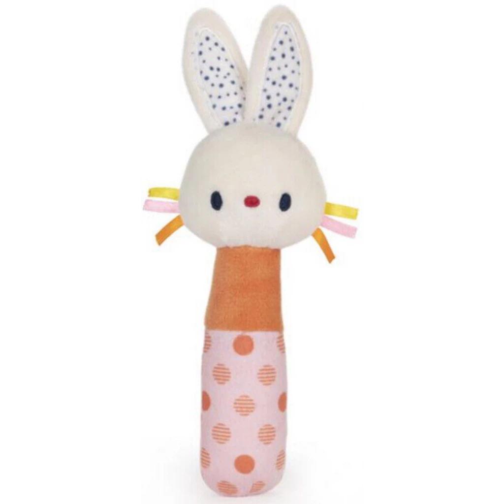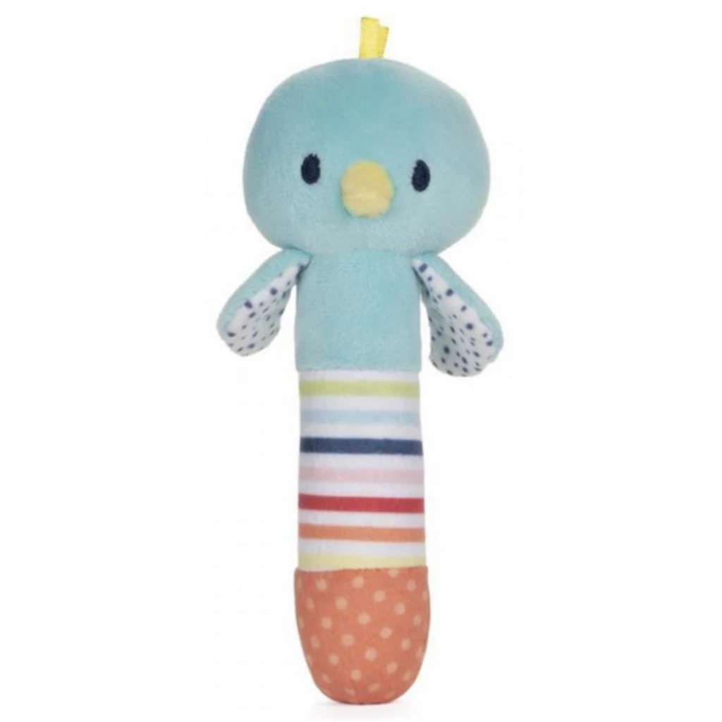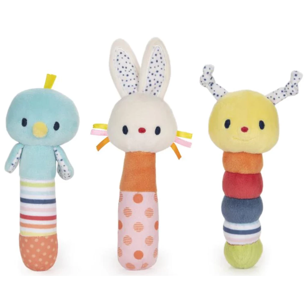 - The plush, 6-inch Tinkle Crinkle Stick Rattle is the perfect size and shape for little hands to grip and shake and feature fun, colorful patterns with ribbons, soft rattles inside and embroidered details promote safe, tactile play for all ages.