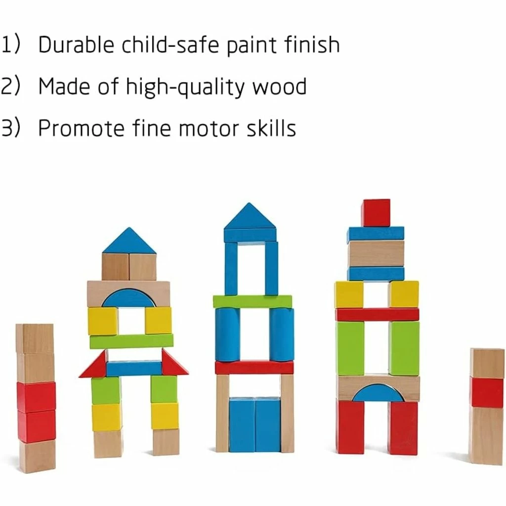 Build your first tower, bridge, car or house with this classic kids’ building blocks set. Hape’s Maple Blocks come with 50 kids’ favorite shapes and are easy to grasp for little hands. Maple Blocks will inspire hours of play and generations of builders. Perfect for time spent one-on-one with parents, as well as for social play with friends, or even imaginative time alone. These sturdy and well-designed blocks are the perfect first block set for babies and toddlers. This colorful set of wooden building blocks for tots includes a drawstring canvas bag for easy storage.Β