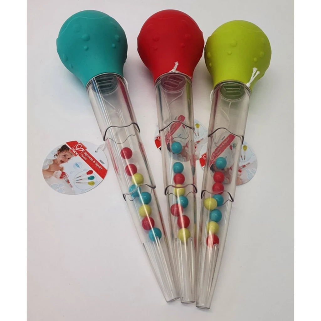 - Colorful beads inside the Squeeze & Squirt bath toy move about as water is sucked up and pushed out, making bath-time fun for your little one!