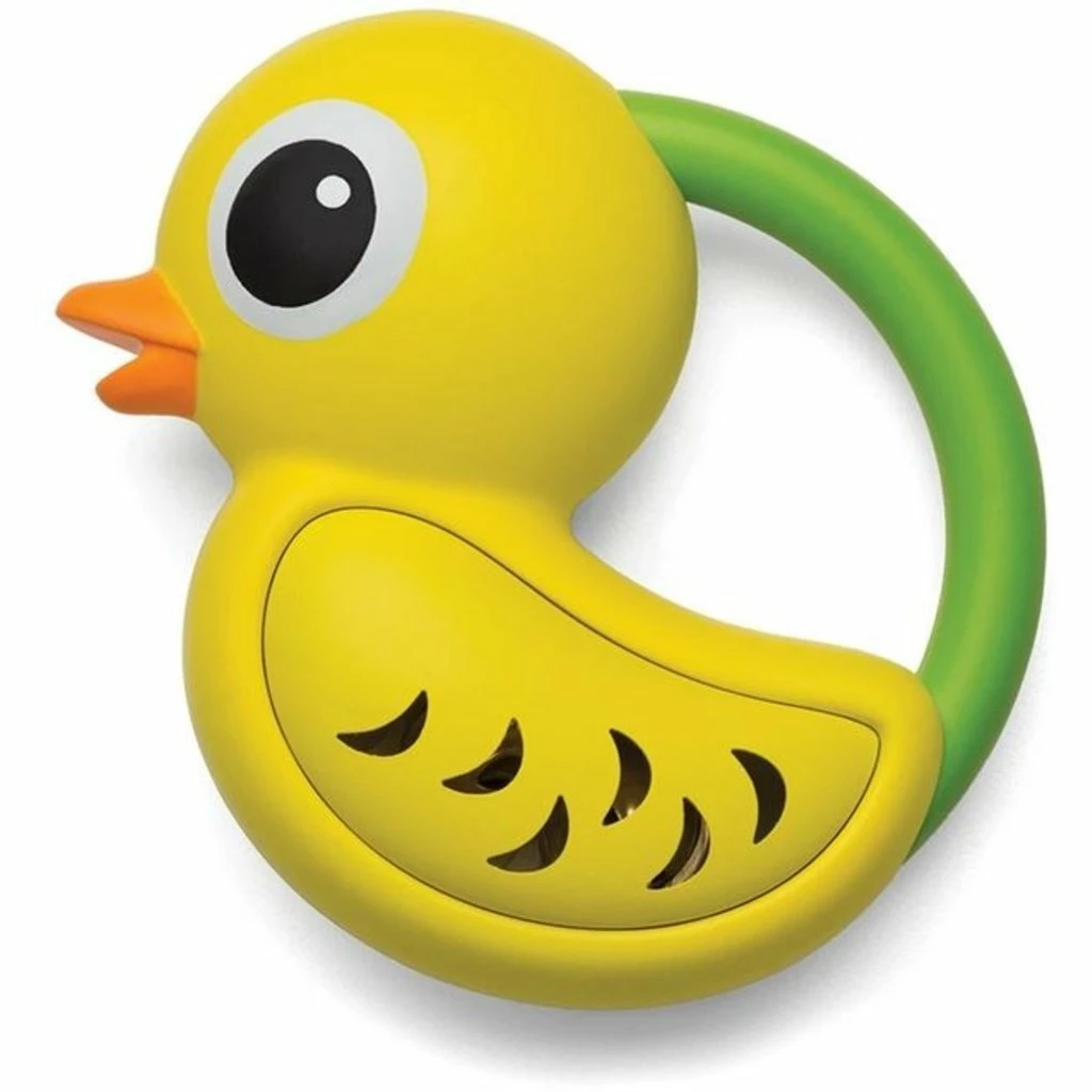- Eight percussion toys include a drum with 2 drum sticks, tambourine, maraca, jingle bell rattle, and 2 castanets in a sweet, adorable pond theme.