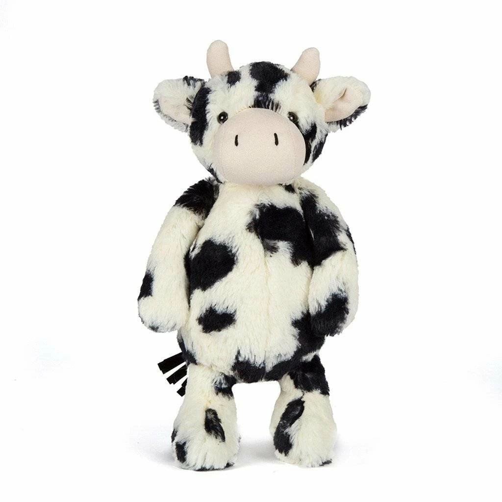 - Jellycat® Bashful Calf is a gorgeous Holstein Friesian with beans in his bottom so that he can sit, pose and chew grass. Bashful is an extremely cute baby Cow with very floppy arms and loves to be cuddled. Mooo!