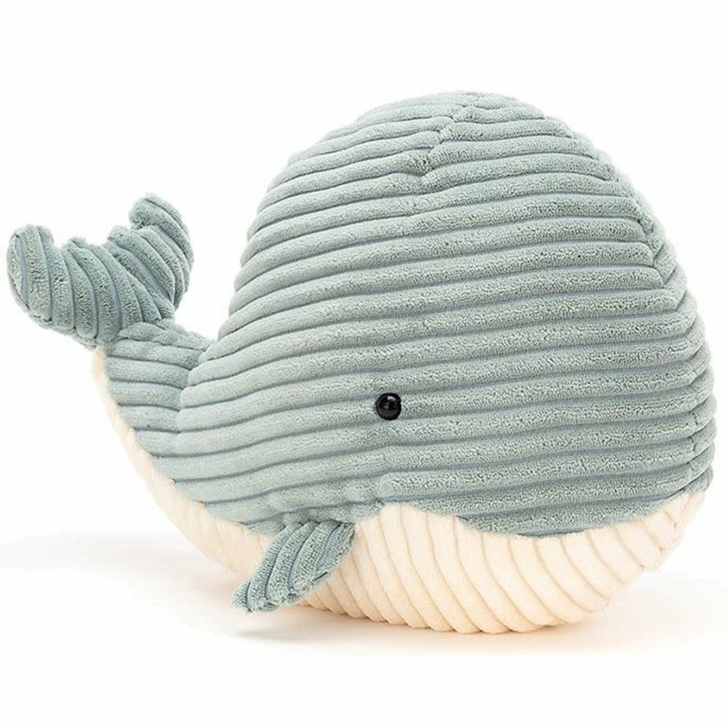 Cordy Roy Whale is a bubble of delight in chunky two-tone cordy fur! Serene in sea-blue with a creamy tummy, curvy tail fin and mini flippers, this wonderful whale can’t wait to join your pod!
