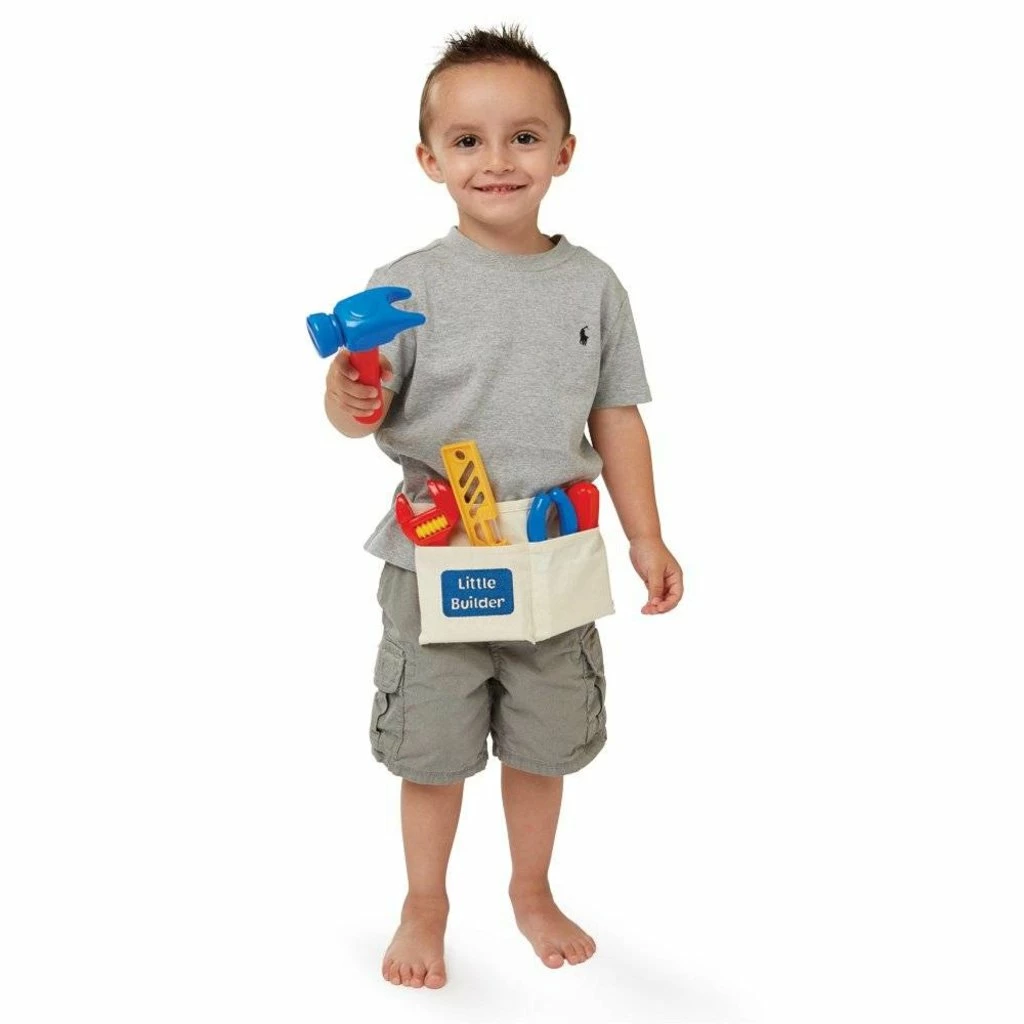 My First Tool Belt is perfect for any little builder! A great introduction to tools, these lightweight plastic components inspire much imaginative play. The sturdy canvas tool belt has 2 easy-to-use pockets to hold all your tools. Set includes a hammer, adjustable wrench, pliers, screwdriver with two bits, and level. Besides the thrill of make believe, your child will be encouraged to learn new vocabulary and learn a bit about different kinds of tools. Which brightly colored item will be your child’s favorite?Β