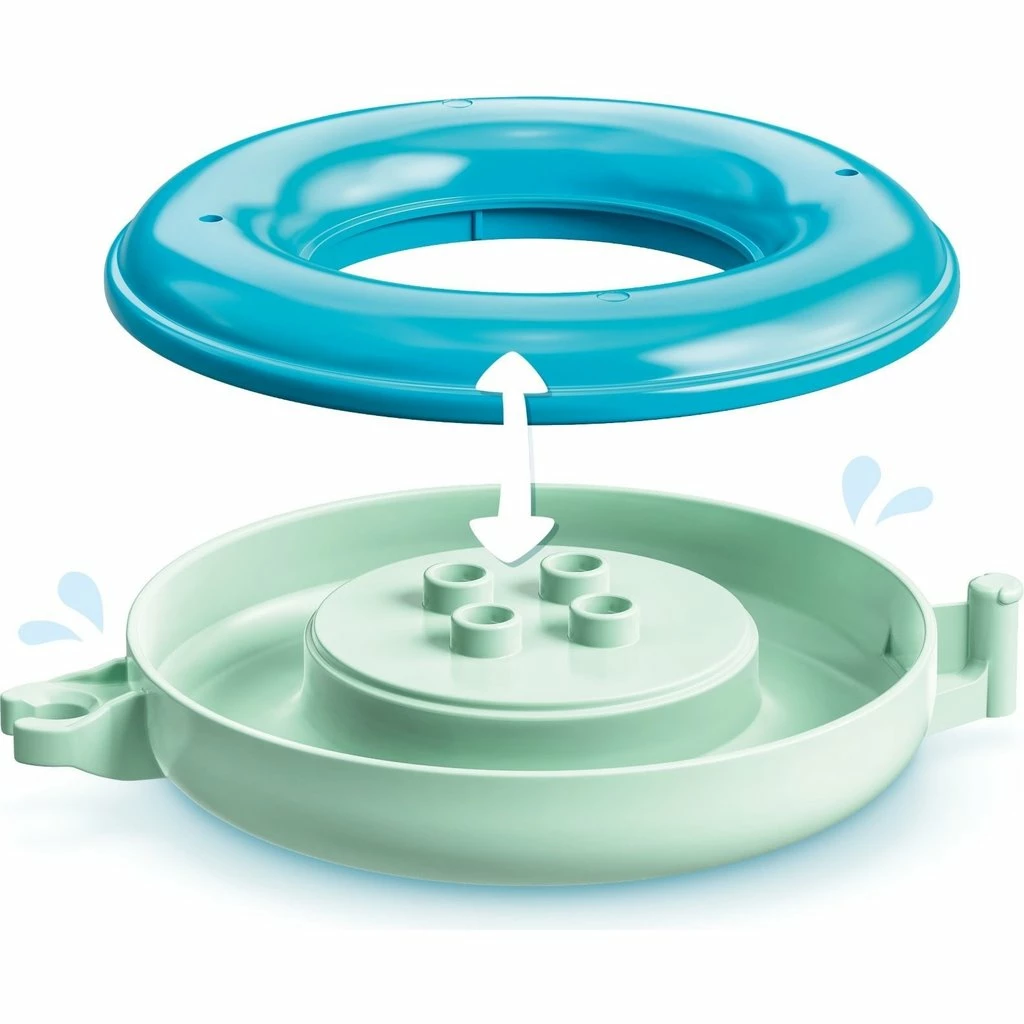 - Toddlers put 2 bricks together to build each animal, then place them in the floating rings. The toddler-friendly rings connect, disconnect and bubble as they move through the water.
