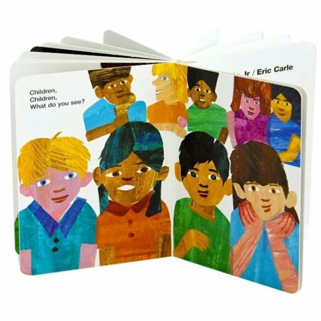 A big happy frog, a plump purple cat, a handsome blue horse, and a soft yellow duck–all parade across the pages of this delightful book. Children will immediately respond to Eric Carle‘s flat, boldly colored collages. Combined with Bill Martin’s singsong text, they create unforgettable images of these endearing animals.