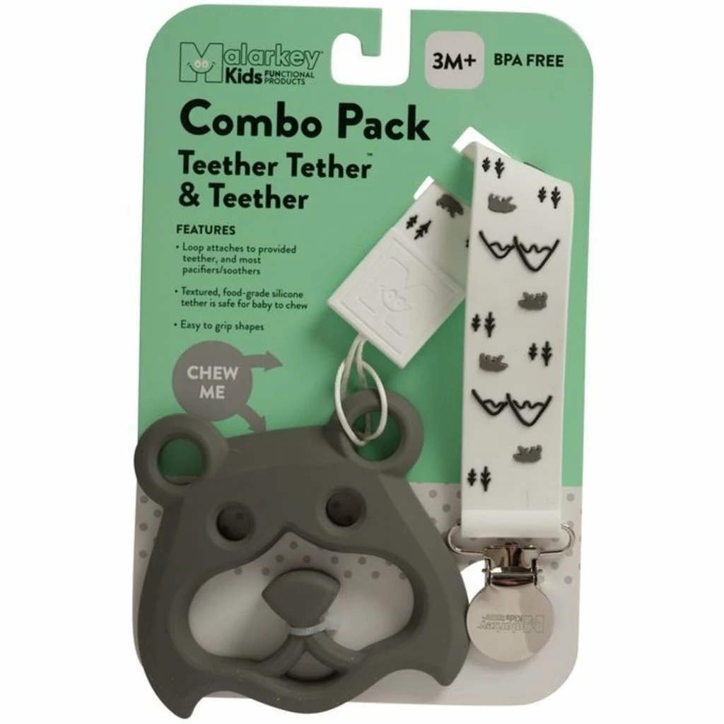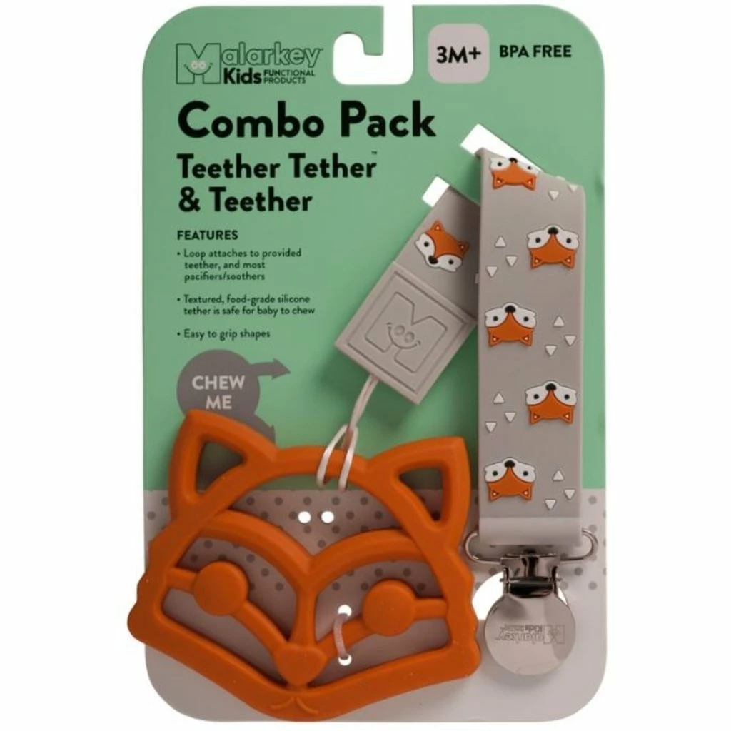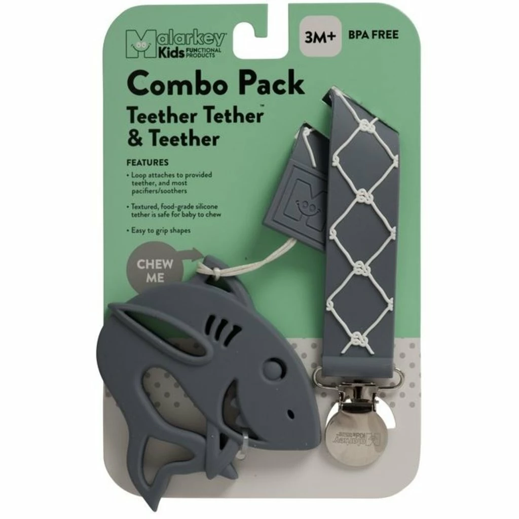 The Teether Tether™ & Teether from Malarkey Kids® is a multi-purpose teething toy. The teether comes in a number of fun shapes designed for easy gripping while the tether’s patterns are textured to soothe baby and provide visual stimulation. Both teether and tether are made from soft, flexible, food-grade silicone with textures that gently massage baby’s gums. The convenient clip attaches to all fabrics while the interchangeable loop attaches to most pacifiers and teethers, keeping them close and clean.