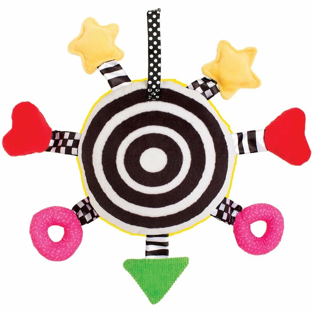 - Bright colors, patterns, and various textures capture and hold baby’s attention.