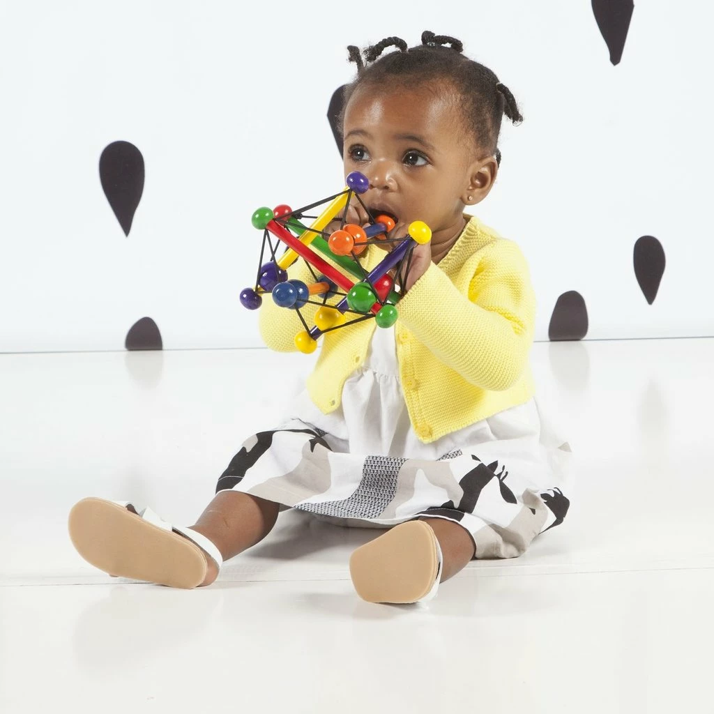 This time-honored classic is instantly recognizable, an intriguing blend of ingenious design and developmental function. The unique shape and interconnecting wooden dowels have long piqued the curiosity of adults, imagine how it must appear to a baby as they begin to experience the world around them?