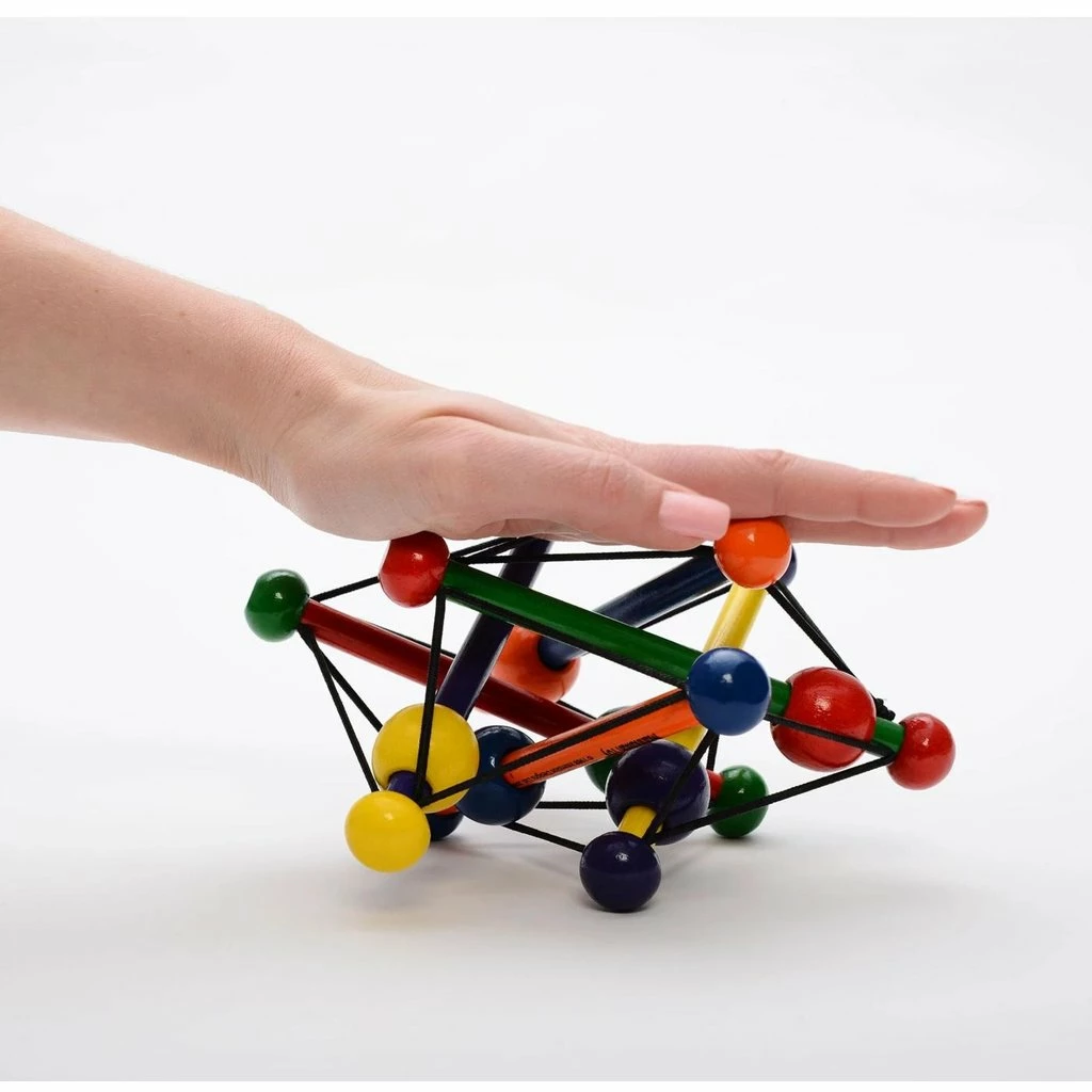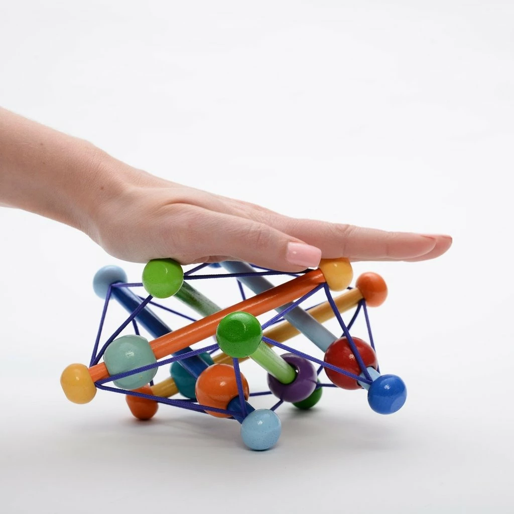 - This early lesson in geometry features dowels tightly strung together by elastic ties. Babies (and adults) will love ‘skwishing’ it down and watching it return to shape.