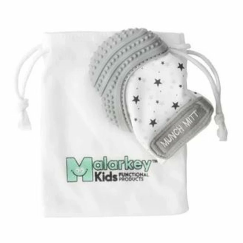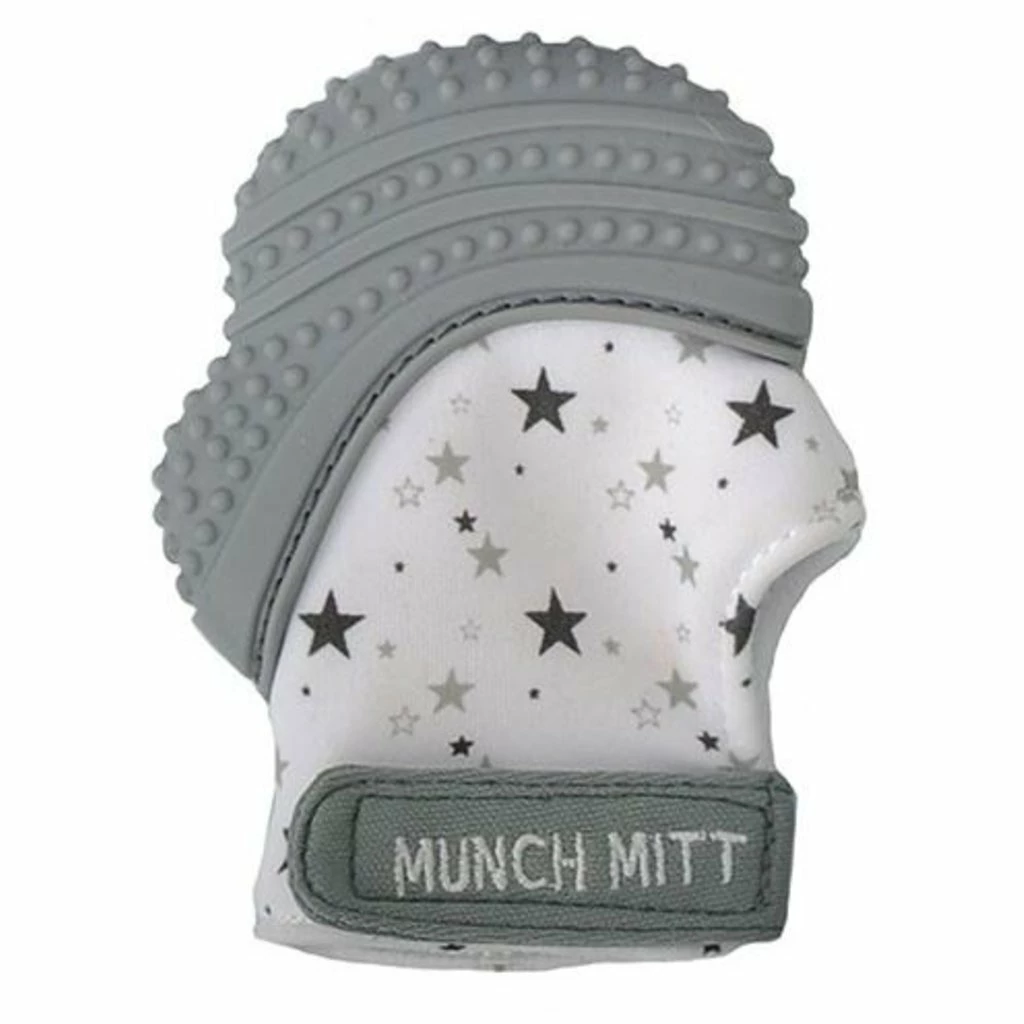 - Munch Mitt® is a comfy mitt with a textured silicone surface for easy and safe teething.