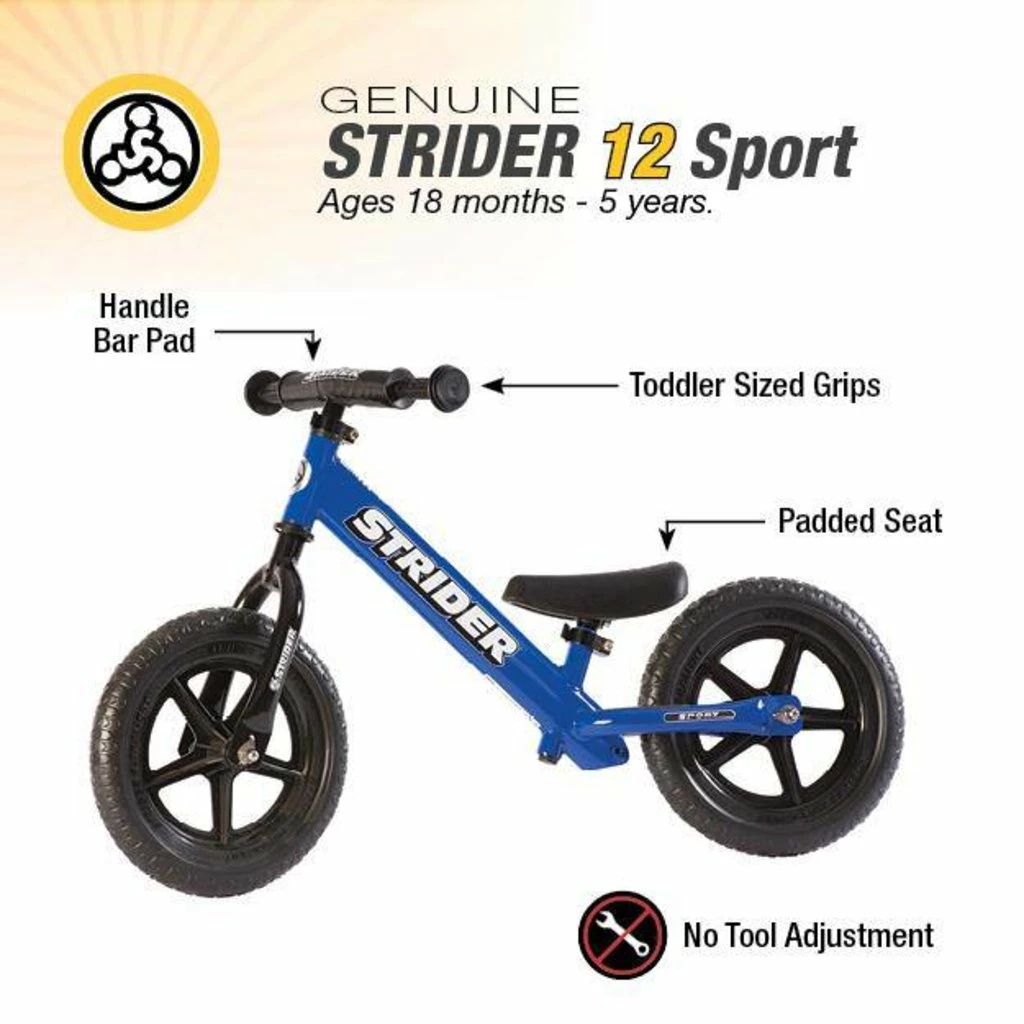 The Strider® Sport Balance Bike is the most popular Strider model. Durability and a wide range of features make the Sport perfect for itty-bitty riders starting out at 18 months to growing 4- to 5-year-olds perfecting their balance and riding skills! With a decade of design evolution and manufacturing improvements, the Sport is the best performance and value.