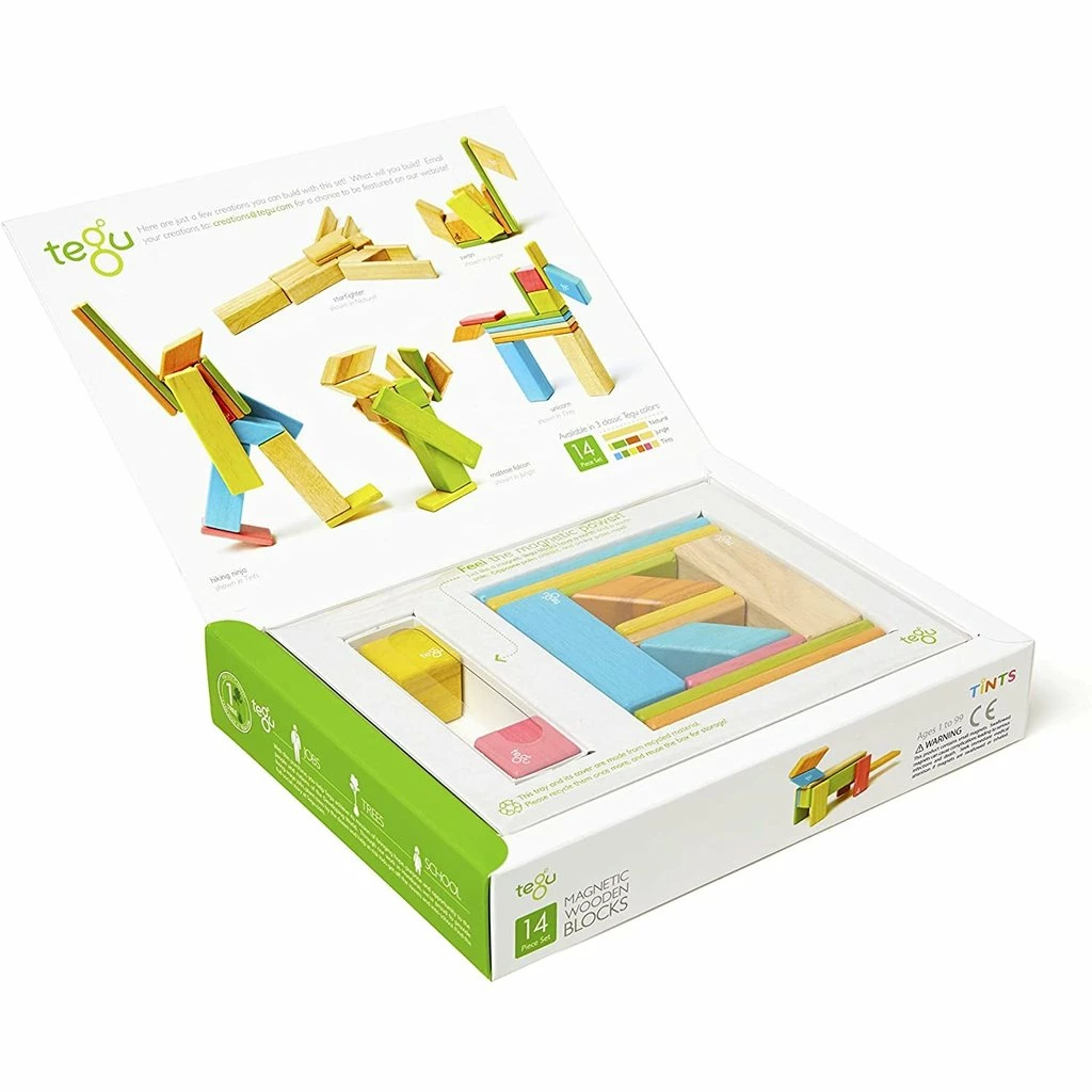 - The 14-piece set is a perfect introduction to TEGU’s Classics collection. Five unique shapes ‘click’ together into a moose, a flying squirrel, or perhaps a time machine for your talking dog. Itβs the perfect entry into TEGUβs Magnetic Wooden World, where playtime is boundless.